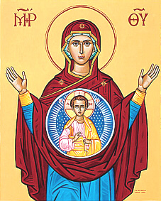 Dans l’Église orthodoxe la Vierge Marie est l’image de ceux qui sont sauvés. Si Jésus-Christ est le Sauveur, Elle est, par excellence, l’image de ceux qui sont sauvés. Elle est, dans tous les aspects de sa vie, non pas la grande exception, mais plutôt le grand exemple. Depuis sa conception jusques à sa Dormition, elle révèle à quel point tous les gens doivent être (quand ils sont véritablement sanctifiés par l’Esprit Saint) serviteurs de Dieu et imitateurs du Christ.